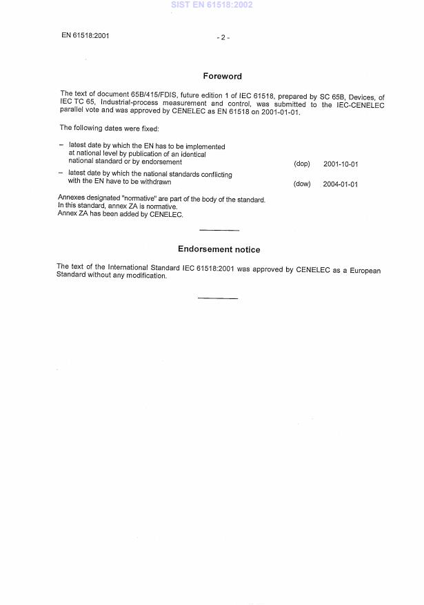 - Reference to corrigendum: Incorporates amendments published in the February 2002 corrigendum to IEC 61518:2001.