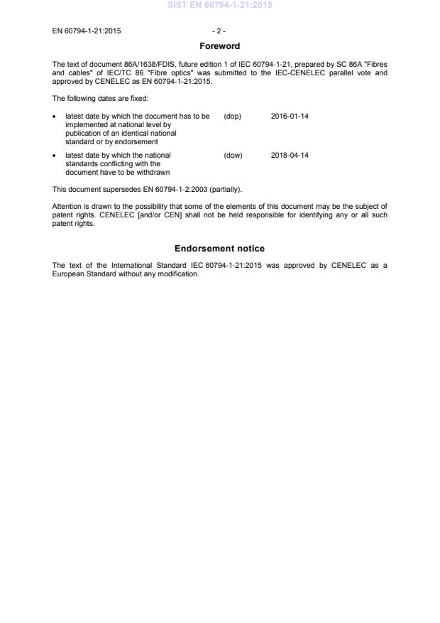 Ta slovenski standard je istoveten z: EN 60794-1-21:2015