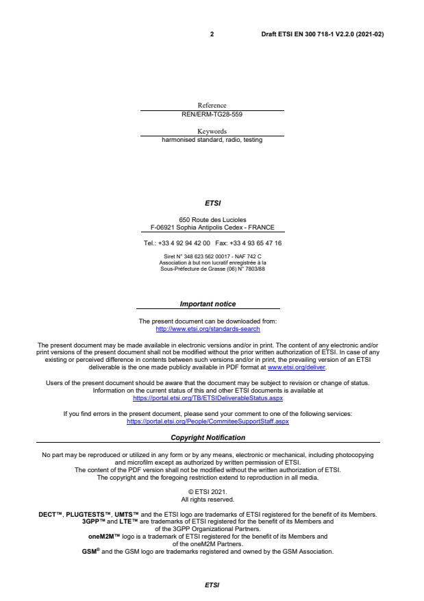 2 Draft ETSI EN 300 718-1 V2.2.0 (2021-02)