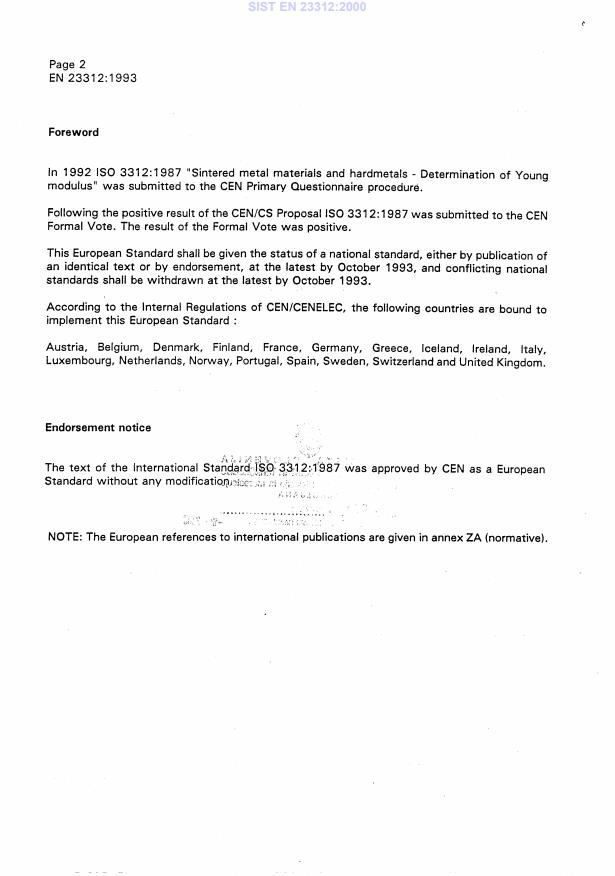 - Note: EN 23312:1993 corresponds to ISO 3312:1987; earlier edition ISO 3312:1975 was cancelled.