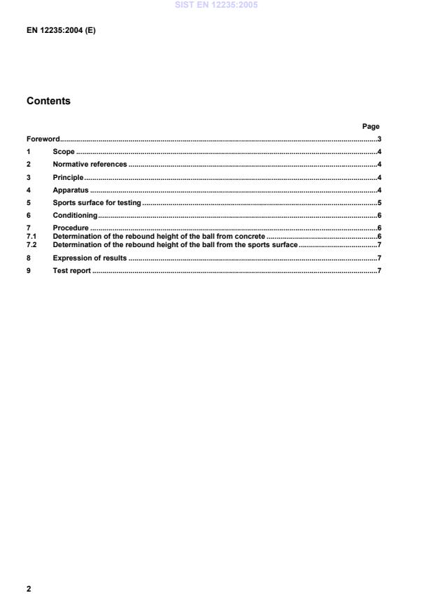 SIST EN 12235:2005 is a standard published by the Slovenian Institute for Standardization (SIST). Its full title is "Surfaces for sports areas - Determination of vertical ball behaviour". This standard covers: This European Standard specifies a method for determination of the rebound height of a ball from a surface, when dropped vertically. It gives two alternative recording procedures for measuring the rebound height, visual and acoustic.