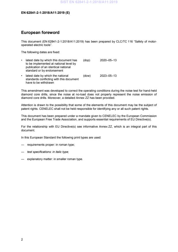 This document (EN 62841-2-1:2018/A11:2019) has been prepared by CLC/TC 116 “Safety of motor-