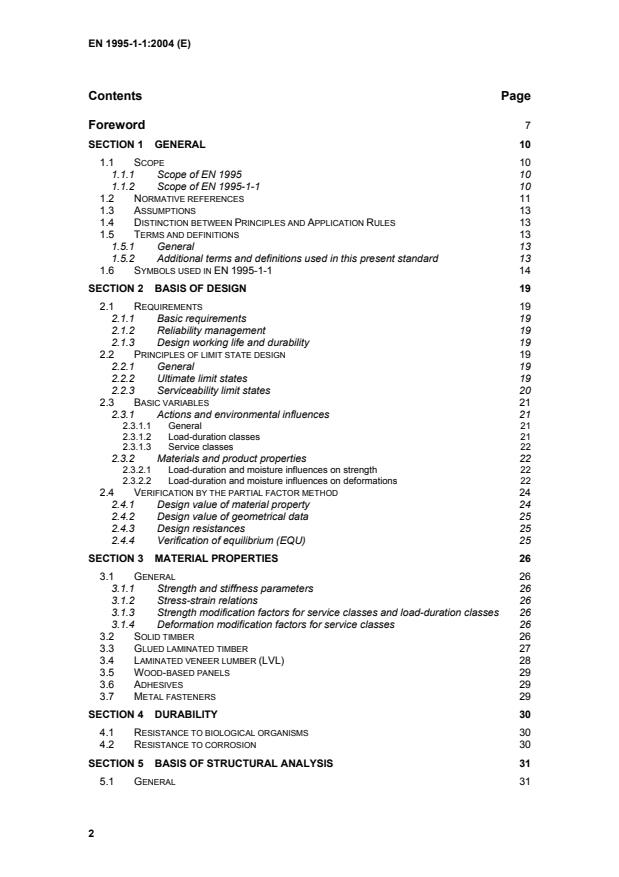 (2) EN 1995-1-1 vsebuje naslednja poglavja: