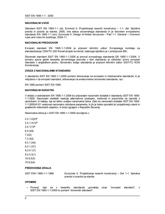 この記事では、SIST EN 1995-1-1:2005、またはユーロコード5として知られる、木造構造物の設計に関するヨーロッパ標準について説明しています。これは一般的なルールと建物に関するルールを含んでいます。この標準では、他の出版物からの規定を組み込んでおり、これらの参照はテキスト内で適切な位置で引用されています。日付付きの参照文献の場合、これらの出版物の後続の改訂や修正は、改訂や修正によってこのヨーロッパ標準に組み込まれた場合にのみ、このヨーロッパ標準に適用されます。日付のない参照文献の場合、参照される出版物の最新版(改訂を含む)が適用されます。