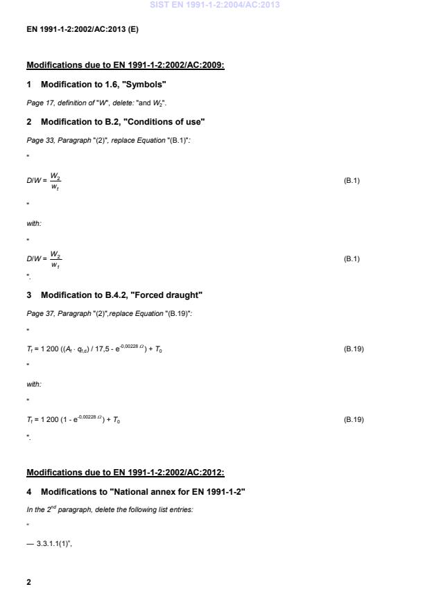 Evrokod 1: Vplivi na konstrukcije - 1-2. del: Splošni vplivi - Vplivi požara na konstrukcije - Popravek