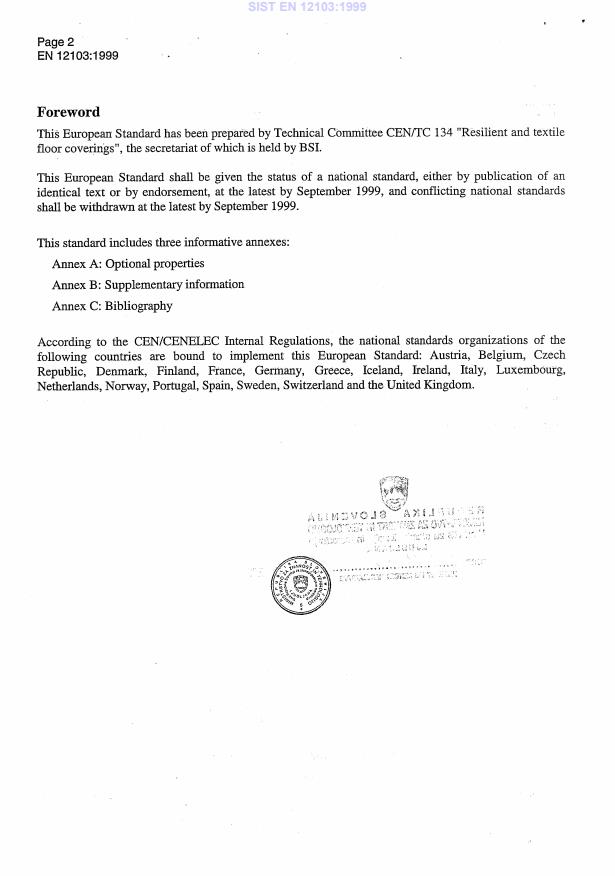 Note: EN 12103:1999 sits within ICS categories 97.150 (Non-textile floor coverings) and 79.100 (Cork and cork products).