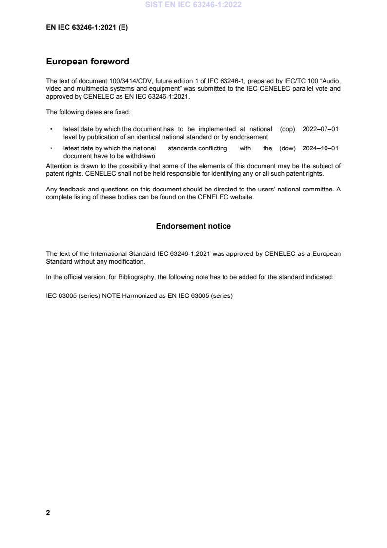 • Adopted as EN IEC 63246-1:2021 by CENELEC for European national implementation.