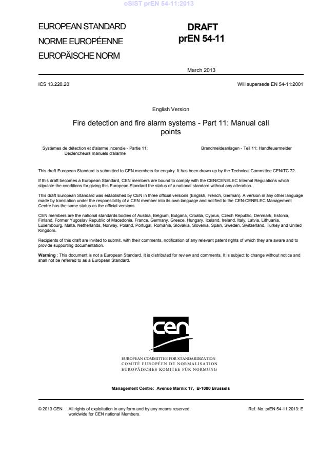 Keywords: prEN 54-11, EN 54-11, manual call points, fire detection, fire alarm systems, environmental tests, AVCP, conformity, CEN.