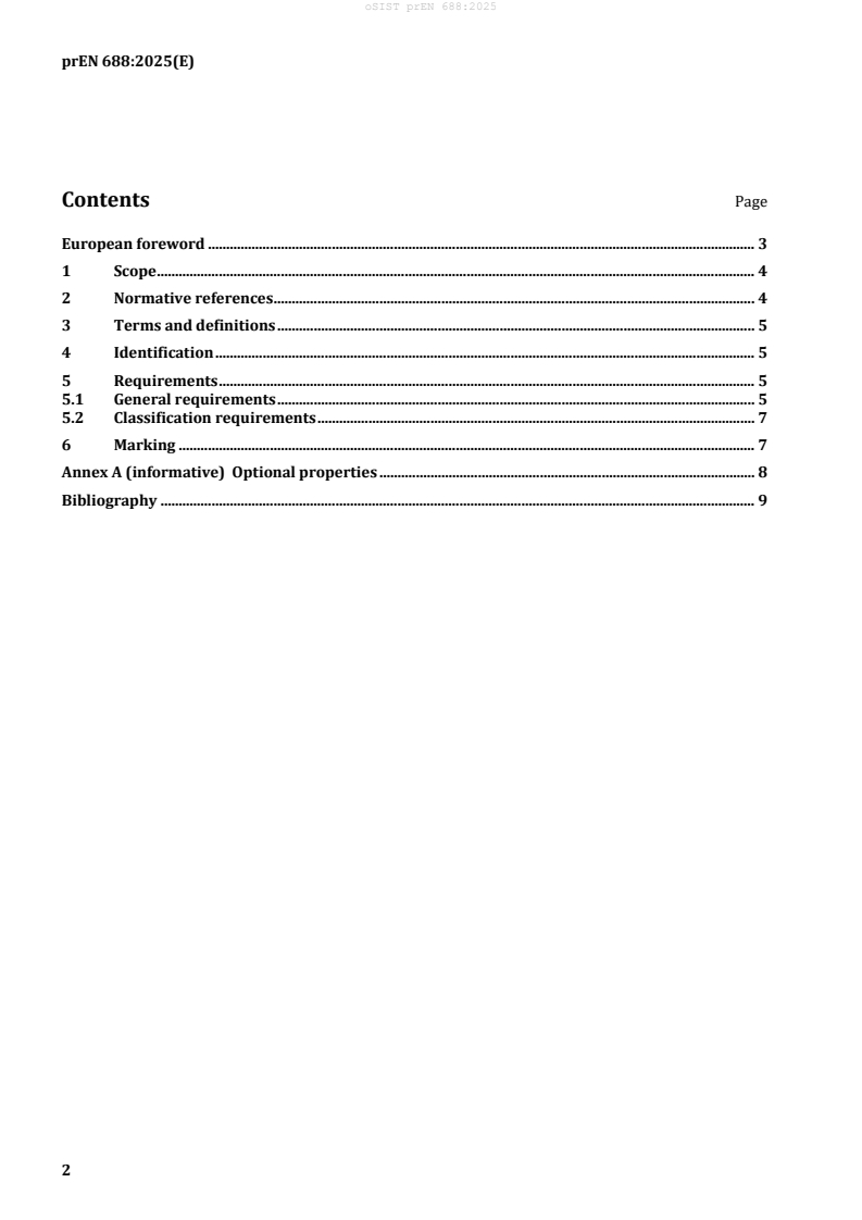 © 2025 CEN All rights of exploitation in any form and by any means reserved Ref. No. prEN 688:2025 E