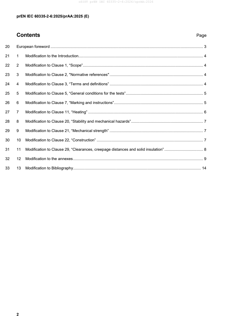 This draft amendment prAA, if approved, will modify the European Standard prEN IEC 60335-2-6:2025; it is submitted to CENELEC