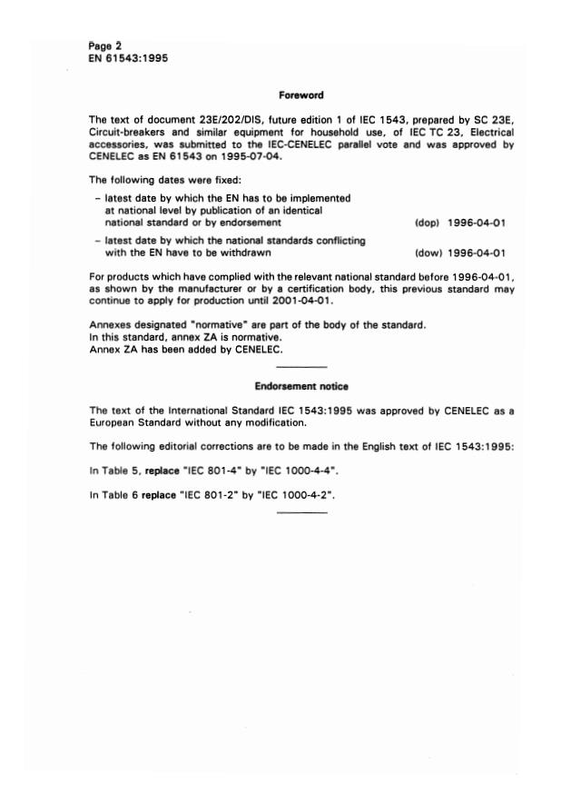 Residual current-operated protective devices (RCDs) for household and similar use - Electromagnetic compatibility (IEC 61543:1995)