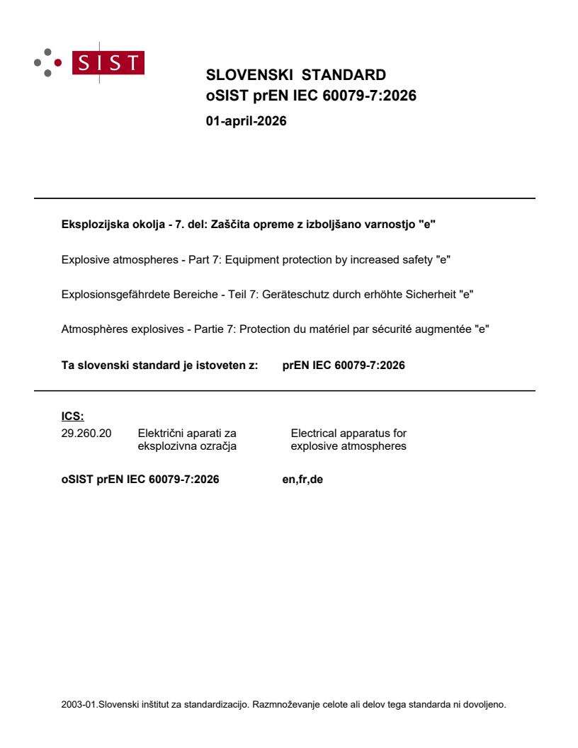 oSIST prEN IEC 60079-7:2026