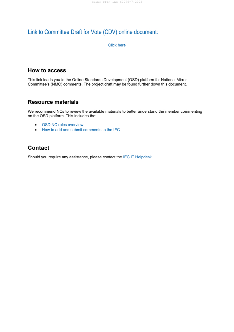 Link to Committee Draft for Vote (CDV) online document: