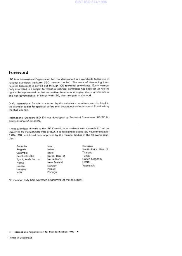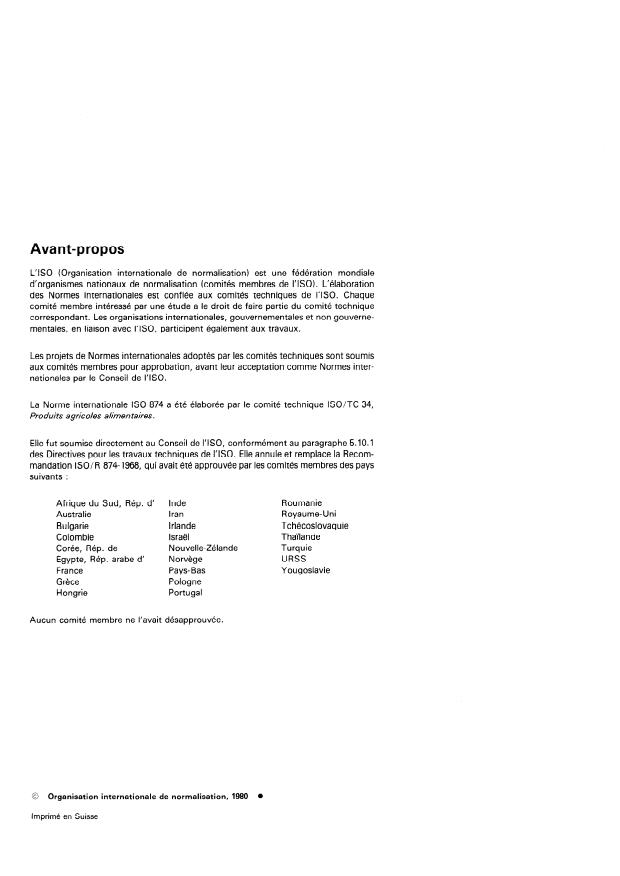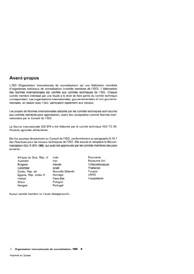 mandation ISO/R 874-1968, qui avait été approuvée par les comités membres des pays