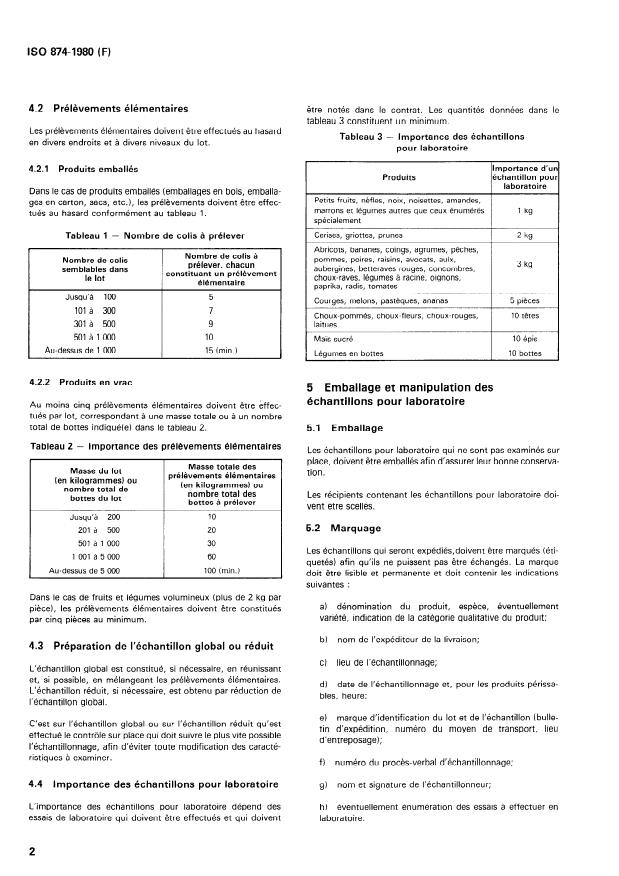 Keywords: ISO 874, fresh fruits and vegetables sampling, sampling procedure, laboratory sample, lot preparation, sample handling, international trade sampling.
