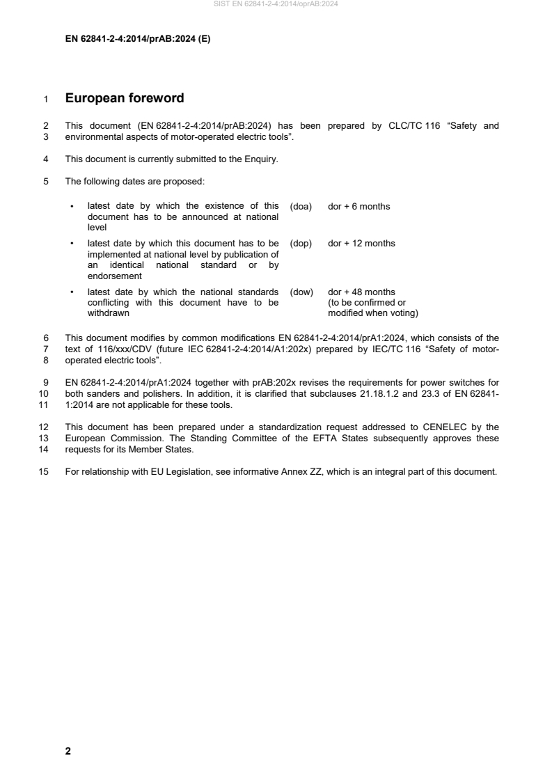 2 This document (EN 62841-2-4:2014/prAB:2024) has been prepared by CLC/TC 116 “Safety and