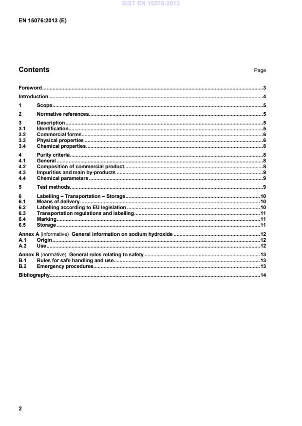 Ta evropski standard se uporablja za raztopino natrijevega hidroksida, ki se lahko uporablja neposredno ali za izdelavo komercialnih oblik za pripravo bazenske vode. Opisuje značilnosti natrijevega hidroksida ter določa zahteve in ustrezne preskusne metode zanj. Podaja informacije za uporabo natrijevega hidroksida pri pripravi bazenske vode in določa pravila za varno ravnanje in uporabo (glej dodatek B).