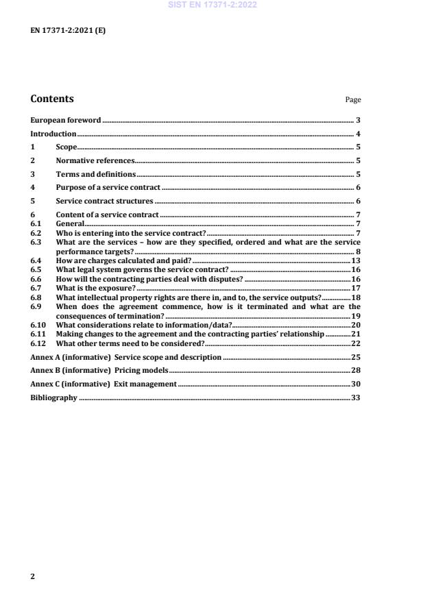 Keywords: EN 17371-2:2021, service contracts, contract design, service procurement, service specification, service level, pricing models, exit management, CEN standard.