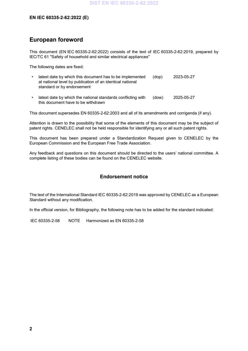 - EN IEC 60335-2-58 (related harmonized standard referenced in the bibliography)