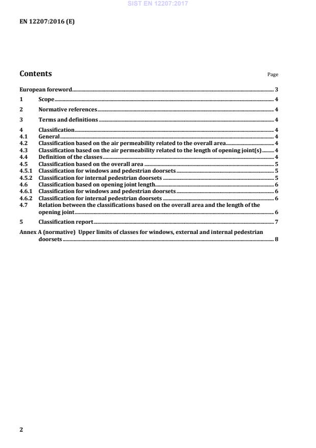 SIST EN 12207:2017 is a standard published by the Slovenian Institute for Standardization (SIST). Its full title is "Windows and doors - Air permeability - Classification". This standard covers: This European Standard defines the classification of test results for completely assembled windows and external and internal pedestrian doorsets of any materials after testing in accordance with EN 1026.