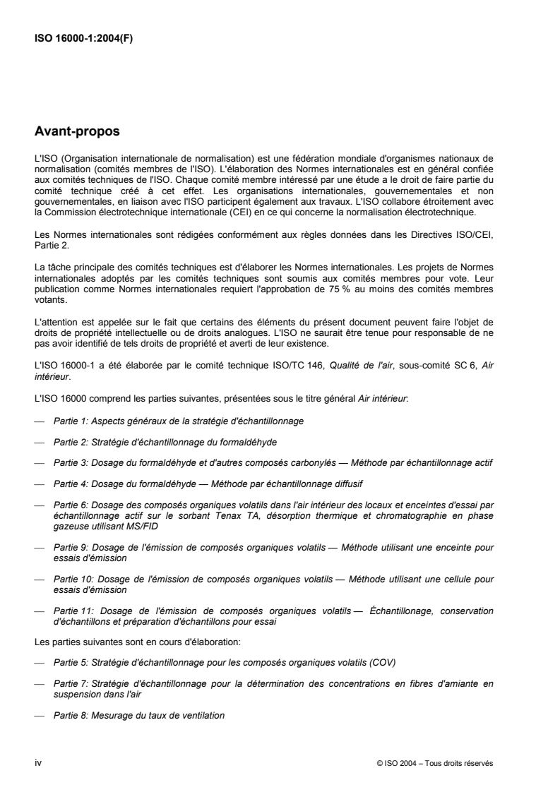 L'ISO 16000-1:2004 est destinée à faciliter la planification du contrôle de la pollution de l'air intérieur.