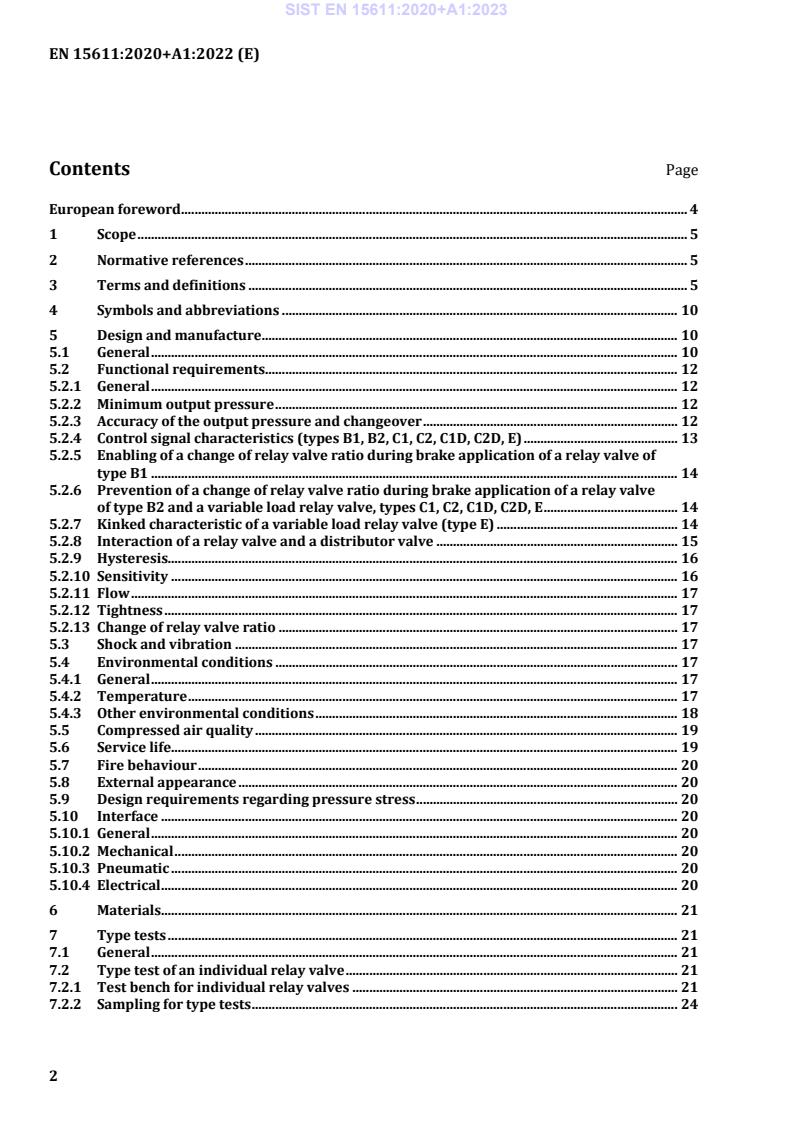 - Scope and terminology: Definitions for relay valve types (A, B1, B2, C1, C2, C1D, C2D, E), input/output pressures and relay valve ratio.