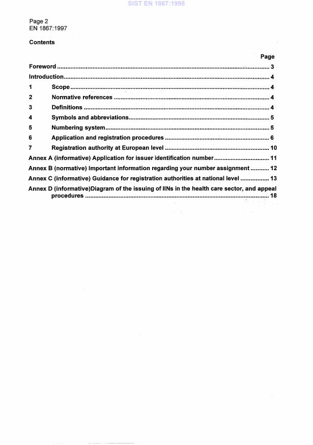 SIST EN 1867:1998 is a standard published by the Slovenian Institute for Standardization (SIST). Its full title is "Machine-readable cards - Health care applications - Numbering system and registration procedure for issuer identifiers". This standard covers: This European Standard specifies the application and registration procedures for numbers assignated to issuers of cards used for health care, health care coverage or health care entitlement, that comply with prEN 1387.