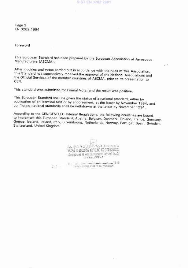 SIST EN 3282:2001 is classified under the following ICS (International Classification for Standards) categories: 49.035 - Components for aerospace construction. The ICS classification helps identify the subject area and facilitates finding related standards.