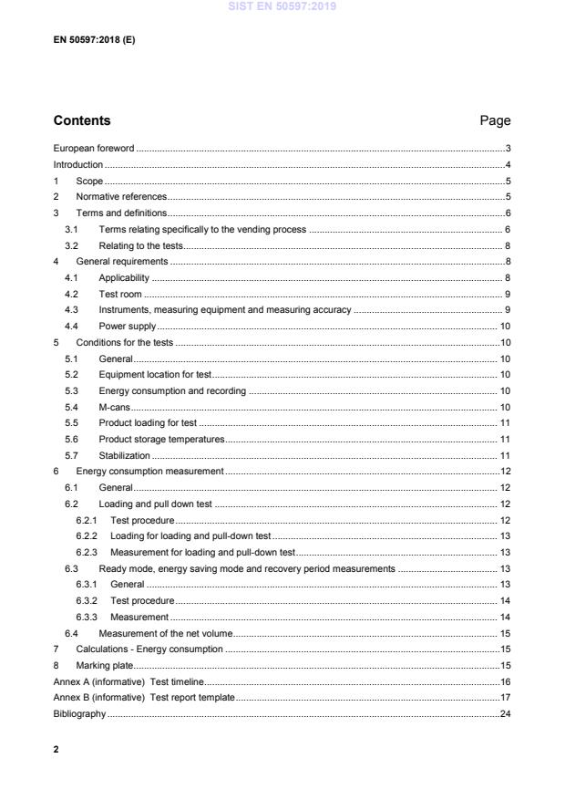 SIST EN 50597:2019 is a standard published by the Slovenian Institute for Standardization (SIST). Its full title is "Energy consumption of vending machines". This standard covers: This document defines methods for the measurement of energy consumption of vending machines, whether or not fitted with refrigerating appliances. The standard applies (but is not limited) to the categories shown in Table 1 of machine types. The following types of vending machine are excluded from this standard: — drink machines dispensing hot and/or cold drinks into cups; — machines with a food heating function; — vending machines operating at temperatures below 0 °C; or — any machine including one or more of these compartments. For verification purposes, it is essential to apply all of the tests specified to a single unit. The tests may also be made individually for the study of a particular characteristic. This standard does not deal with any characteristics of machine design other than energy consumption.