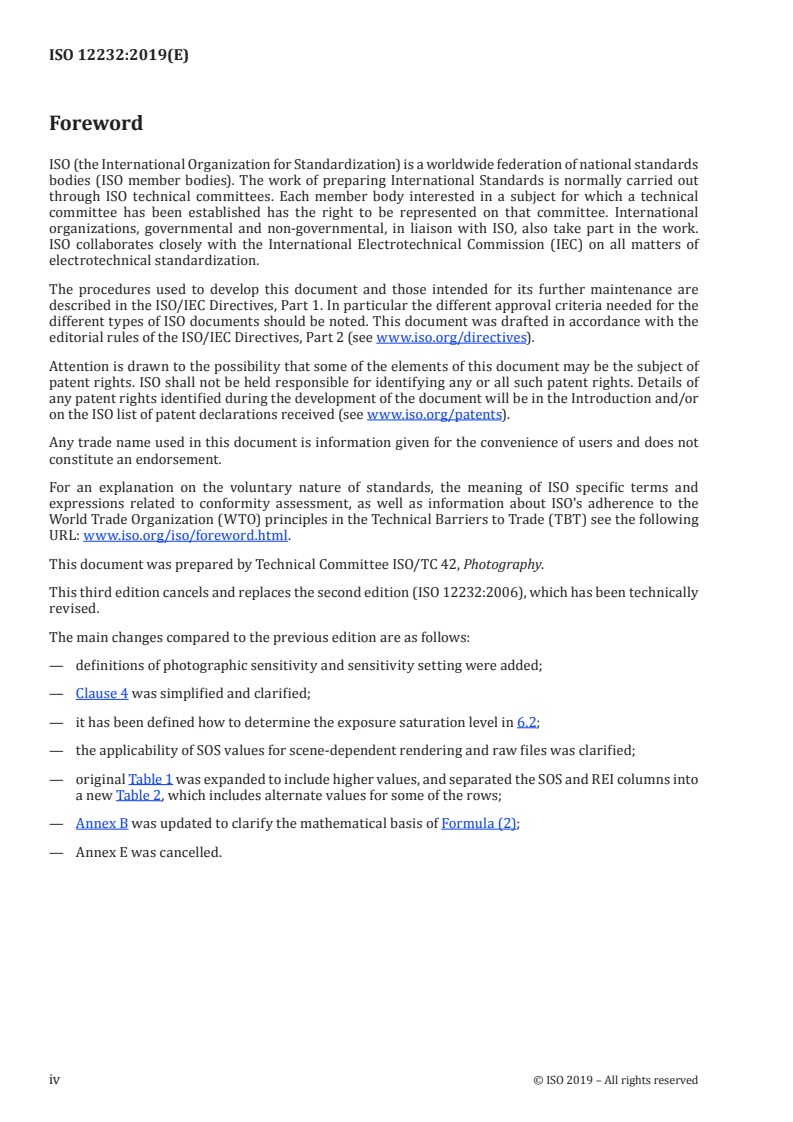 For product development, testing or publishing camera specifications, consult the full ISO 12232:2019 text for exact measurement procedures, formulas and reporting conventions.