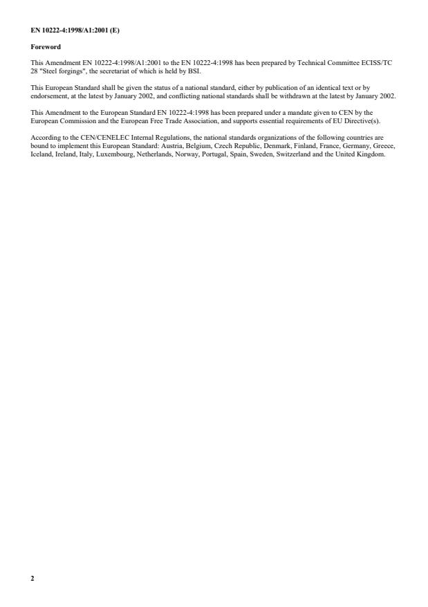 This Amendment EN 10222-4:1998/A1:2001 to the EN 10222-4:1998 has been prepared by Technical Committee ECISS/TC