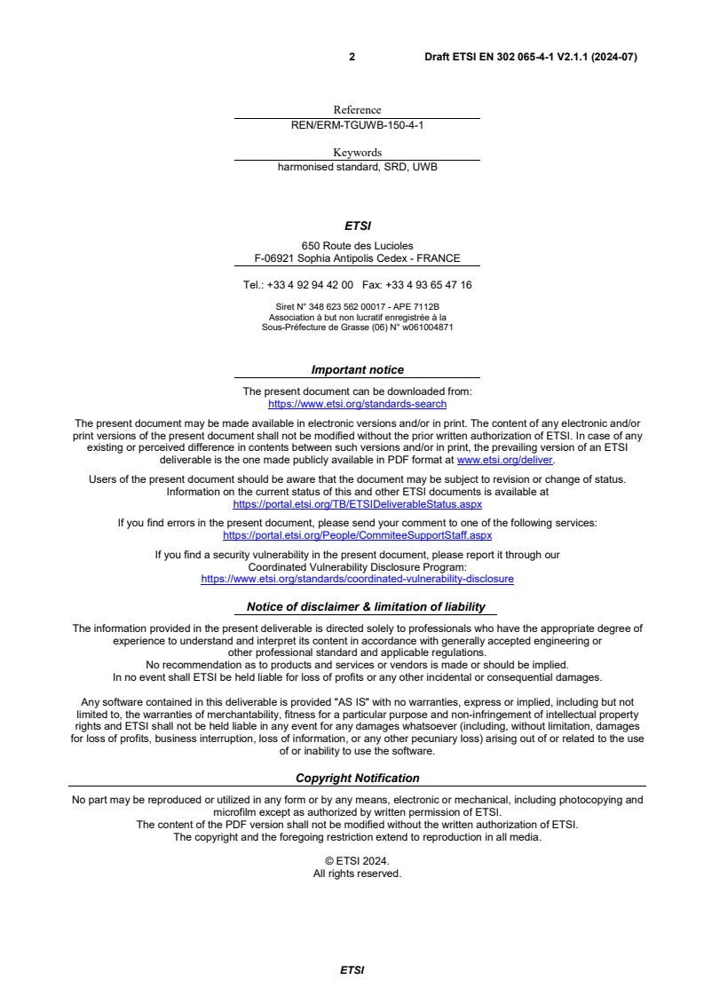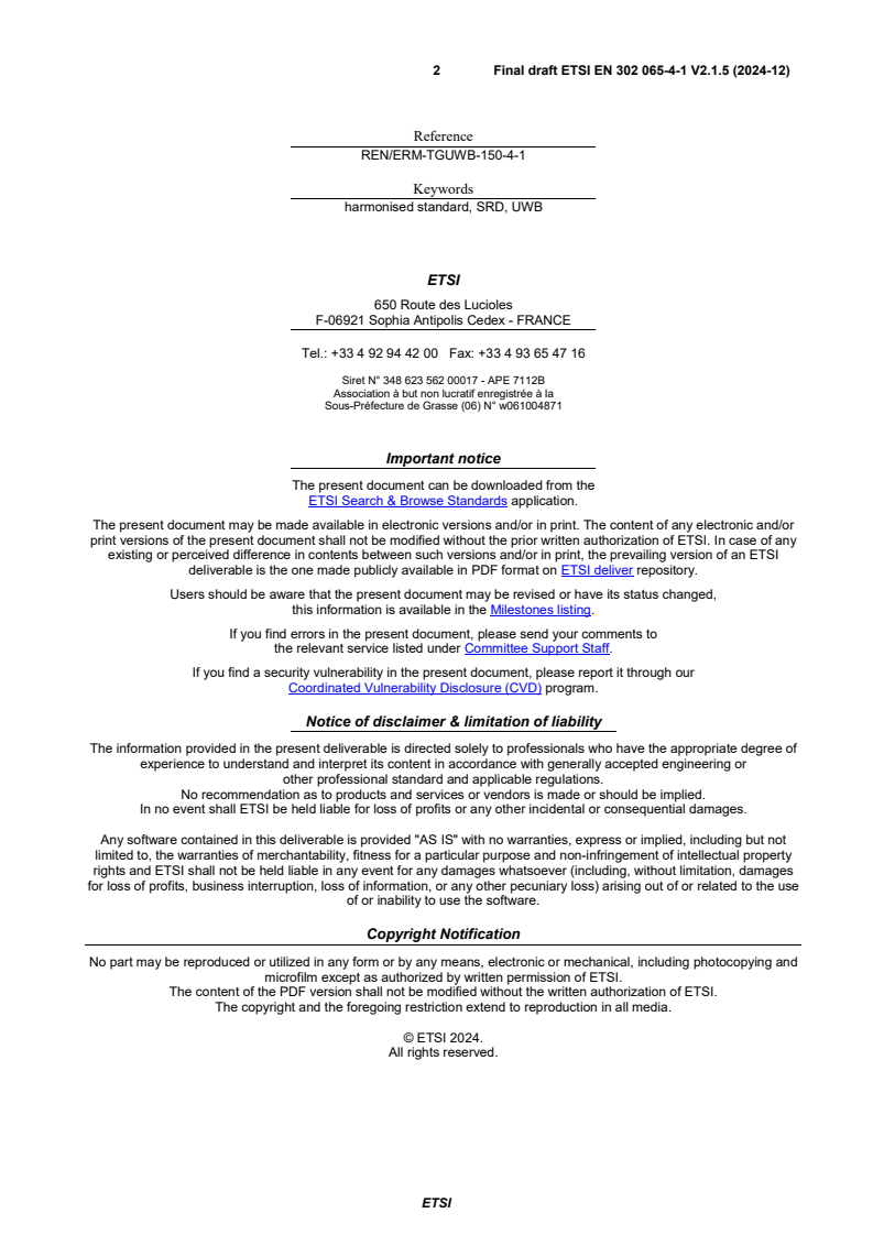 2 Draft ETSI EN 302 065-4-1 V2.1.0 (2021-07)