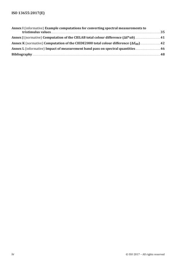 - Normative and informative annexes covering sample backing, UV‑cut conformance tests, bandpass widening procedures, inter‑instrument agreement methods, certified reference materials and worked examples.