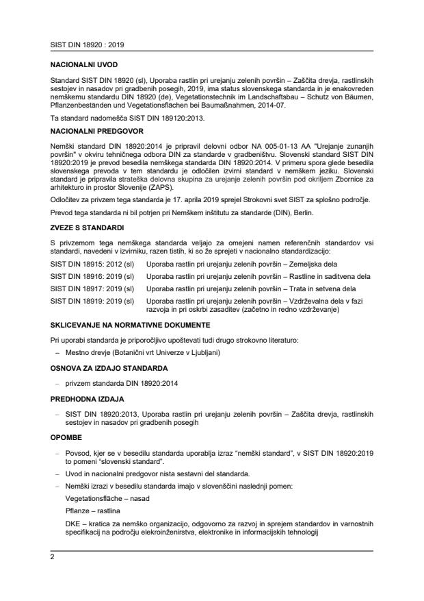 18920:2019 je prevod besedila nemškega standarda DIN 18920:2014. V primeru spora glede besedila