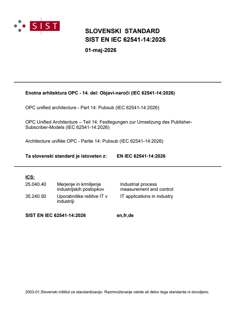 SIST EN IEC 62541-14:2026