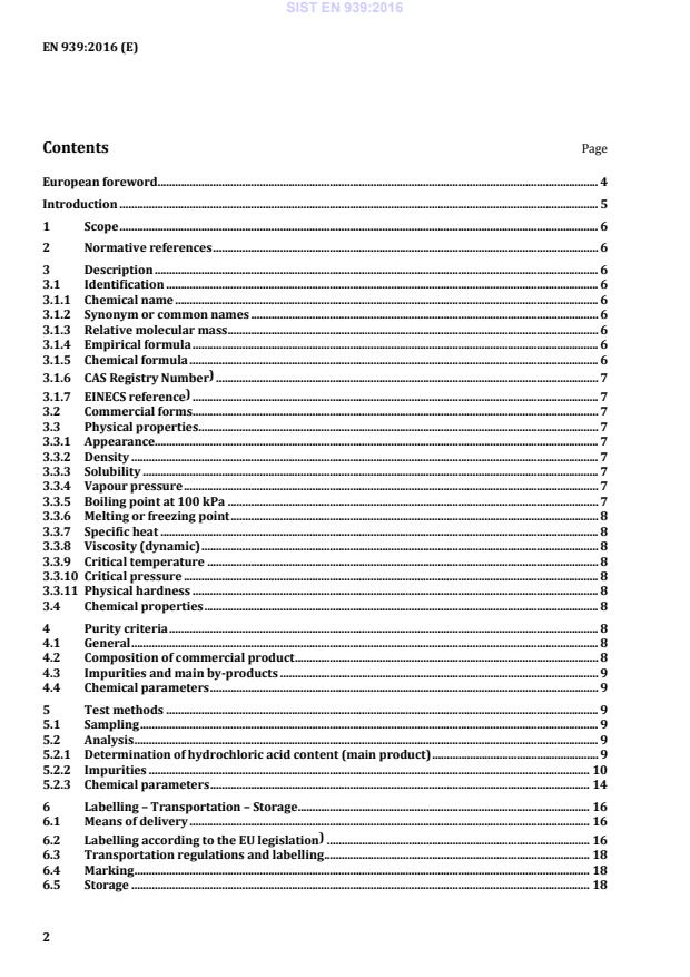 - Keywords: EN 939:2016, hydrochloric acid, water treatment, drinking water, purity criteria, test methods, labelling, storage, safety, CEN.