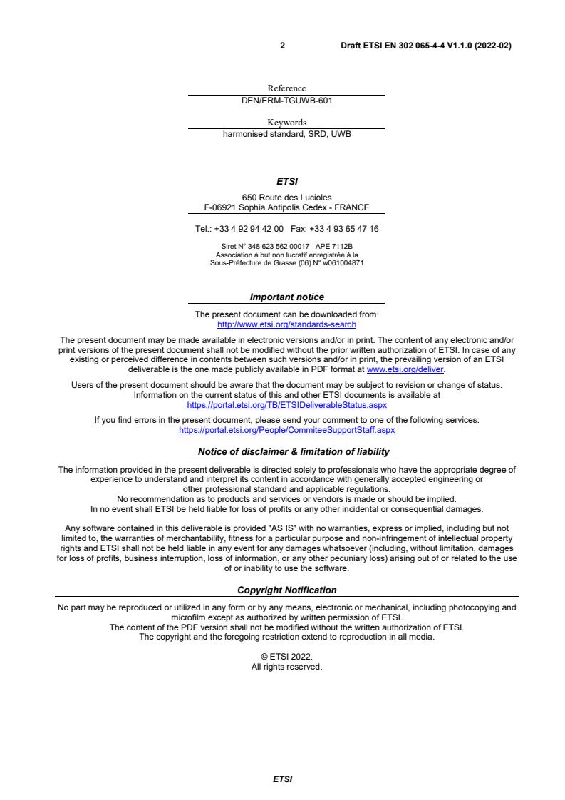 2 Draft ETSI EN 302 065-4-4 V1.1.0 (2022-02)