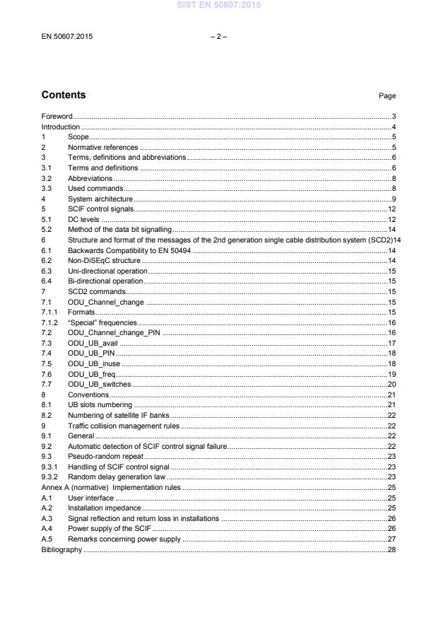 SIST EN 50607:2015 is a standard published by the Slovenian Institute for Standardization (SIST). Its full title is "Satellite signal distribution over a single coaxial cable - Second generation". This standard covers: This standard describes: the system physical structure; the system control signals, which implement a set of messages using DiSEqC physical layer but not the DiSEqC message structure; the definition of identified configurations; the management of the potential collisions in the control signals traffic. Figure 1 illustrates the physical system configuration considered in this standard. Several satellite signal demodulators can receive signals from any of the input signal banks (Bank 1, Bank 2, Bank M, with M 256) of the LNB or the switch. The signals selected by the demodulators (or receivers) are transported via a single cable to these demodulators (Receiver 1, Receiver 2, Receiver N, with N 32). To achieve these single cable distributions, the Single Cable Interface (SCIF, likely embedded in a LNB or a Switch) features some specific functions and characteristics.