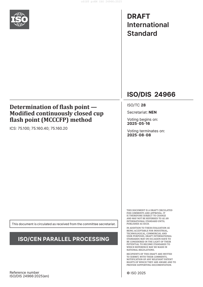 Determination of flash point - Modified continuously closed cup flash point (MCCCFP) method (ISO/DIS 24966:2025)
