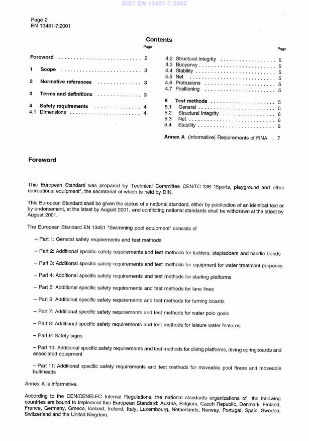 Dieser Teil der EN 13451 legt sicherheitstechnische Anforderungen für Wasserballtore zusätzlich zu den all-gemeinen sicherheitstechnischen Anforderungen nach EN 13451-1:2001 fest.