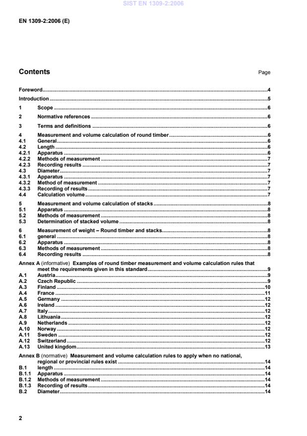 EN 1309-2:2006 (CEN) - "Round and sawn timber - Method of measurement of dimensions - Part 2: Round timber" - defines the principles for deriving measurement and volume calculation rules for felled round timber (hardwood and softwood). It sets minimum requirements for how length, diameter, stacked volume and weight are measured, recorded and calculated. Tropical timber is excluded. The standard is intended to harmonize national and regional rules across CEN member states and includes informative examples (Annex A) and a normative fallback method where no local rules exist (Annex B).