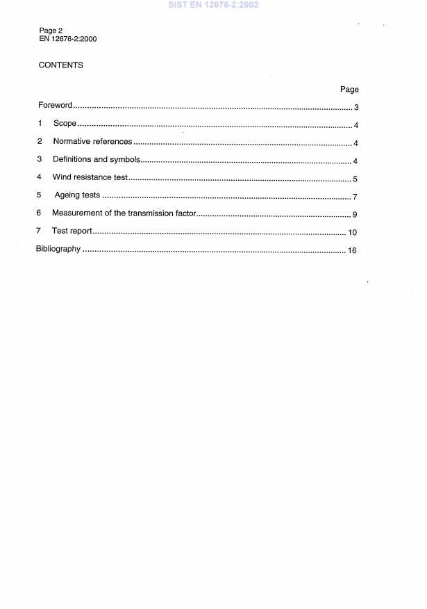 EN 12676-2:2000 is a CEN standard titled "Anti-glare systems for roads - Part 2: Test methods" (adopted in some countries as SIST EN 12676-2:2002). The document defines the laboratory test conditions required to verify key performance characteristics of road anti-glare systems (glare screens/anti-glare panels). It focuses on repeatable, standardized test methods used to assess durability, optical performance and structural behaviour under controlled conditions.