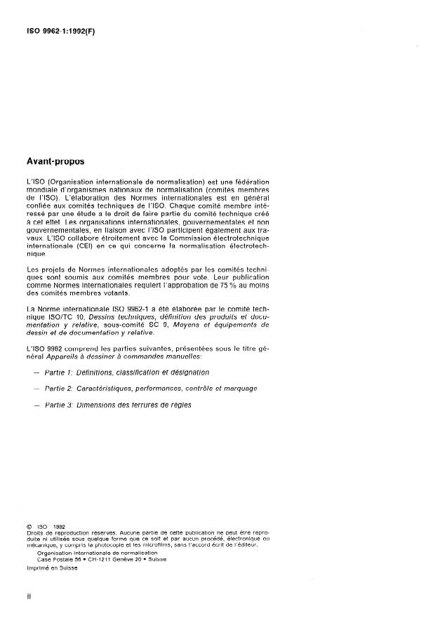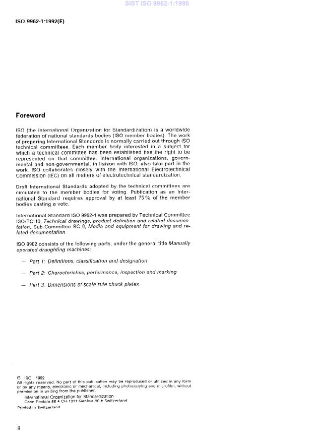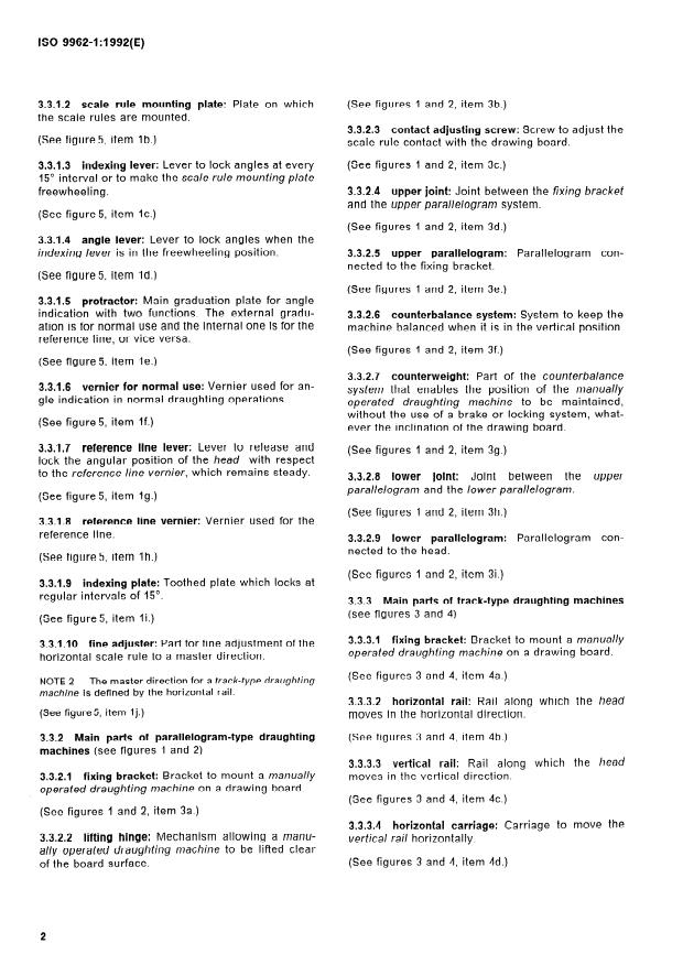 Keywords: ISO 9962-1, manually operated draughting machines, classification, definitions, designation, parallelogram, track-type, scale rule chuck plate, drawing board inclination, usable area.