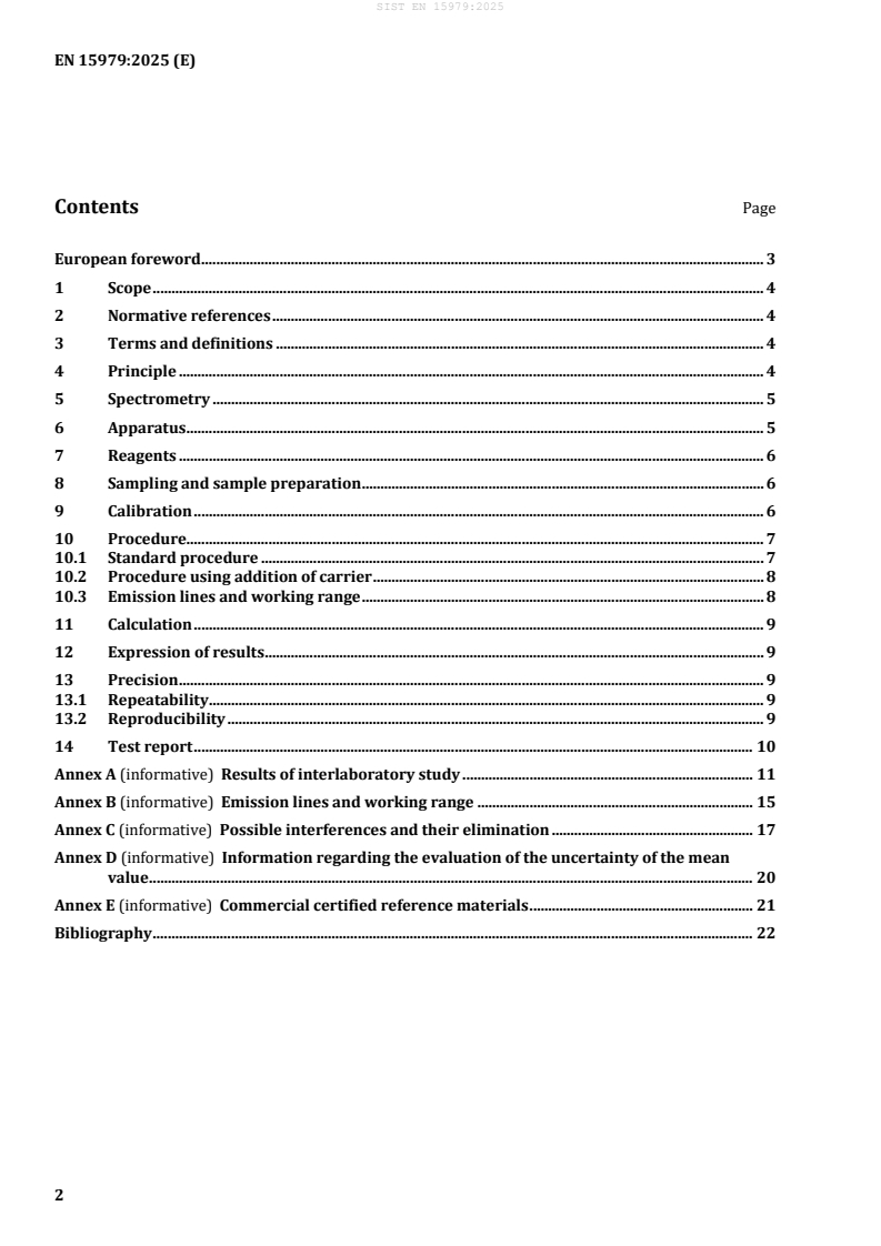 - Informative annexes in EN 15979:2025 detail emission lines, interferences, CRMs and interlaboratory results to support method implementation.