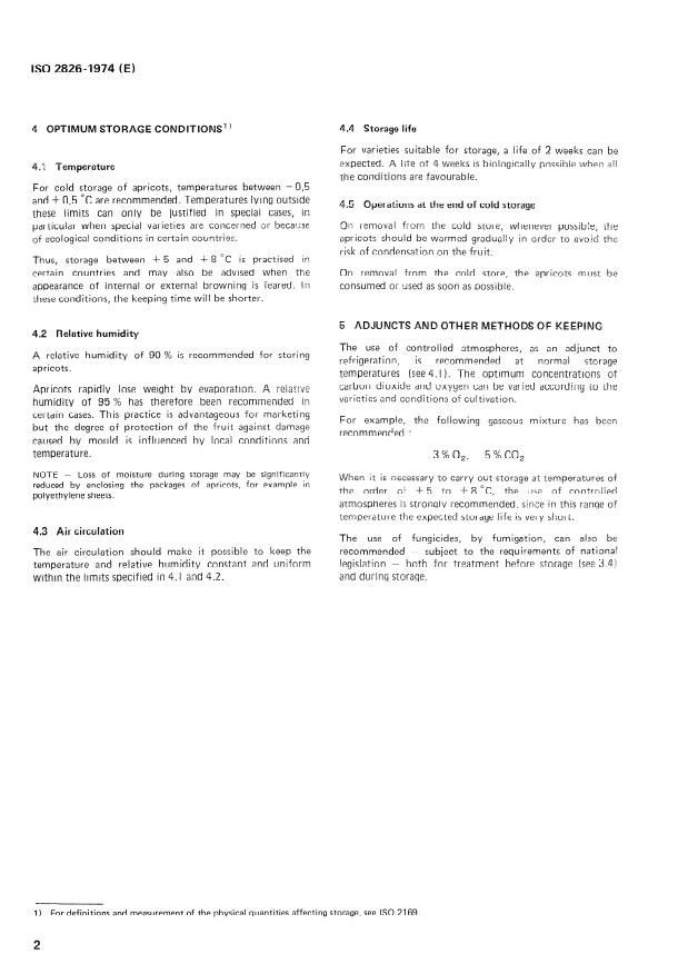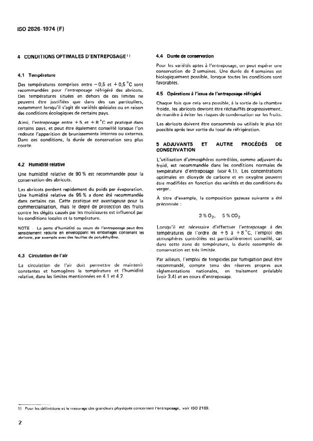 Keywords: ISO 2826:1974, apricots cold storage, apricot storage conditions, refrigerated storage, postharvest handling, controlled atmosphere, storage temperature, relative humidity.