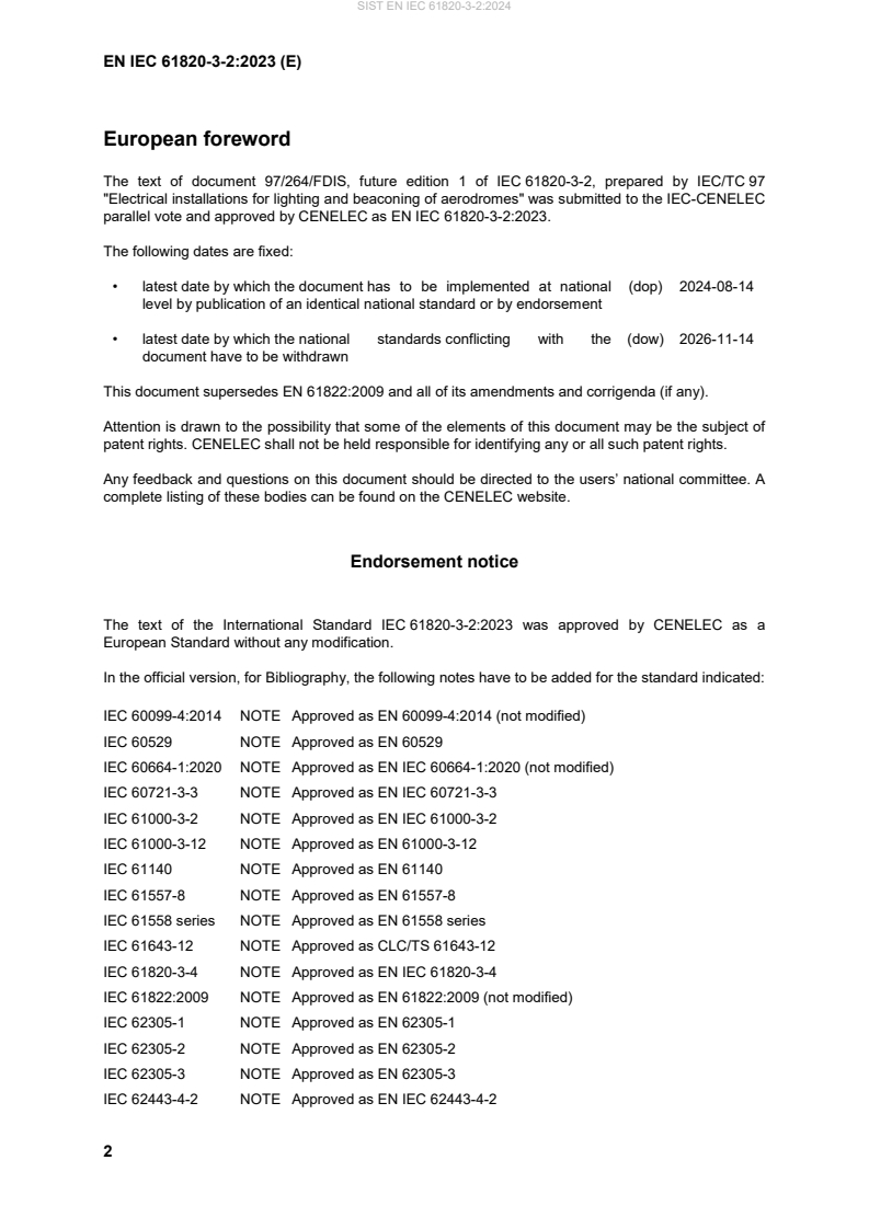 Keywords: EN IEC 61820-3-2:2023, aeronautical ground lighting, AGL, series circuits, power electronic converter systems, PECS, 6,6 A CCR, LED luminaires, power supplies, functional safety, EMC.