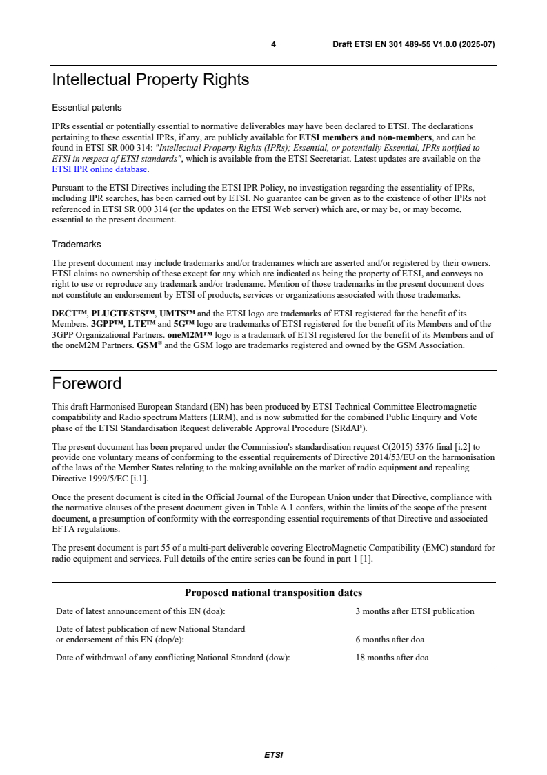 2 Draft ETSI EN 301 489-55 V1.0.0 (2025-07)