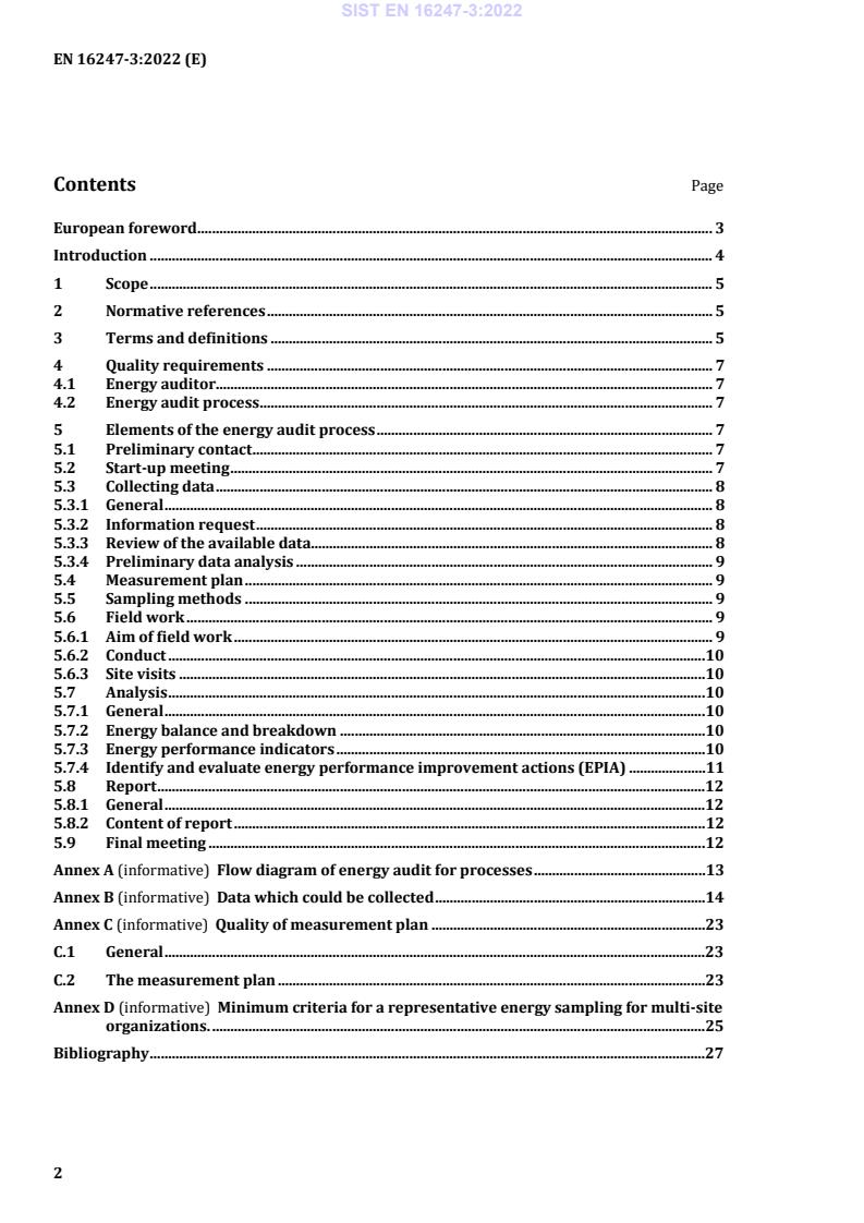 This document specifies the requirements, methodology and deliverables of an energy audit within a process. These consist of: a) organizing and conducting an energy audit; b) analysing the data from the energy audit; c) reporting and documenting the energy audit findings. This part of the standard applies to sites or parts of sites where a significant part of the energy use is due to processes. It is used in conjunction with and is supplementary to EN 16247-1, Energy audits - Part 1: General requirements. It provides additional requirements to EN 16247-1 and is applied simultaneously. A process can include one or more production lines or services, offices, laboratories, research centres, packaging and warehouse sections with specific operational conditions and site transportation. An energy audit can include the whole site or part of a site. If buildings are included in the scope of the energy audit, the energy auditor can choose to apply EN 16247-2, Energy Audits - Part 2: Buildings. If on-site transport on a site is included in the scope of the energy audit, the energy auditor can choose to apply EN 16247-4, Energy audits - Part 4: Transport. NOTE The decision to apply Parts 2 and/or 4 is expected to be made during the preliminary contact, see 5.1.