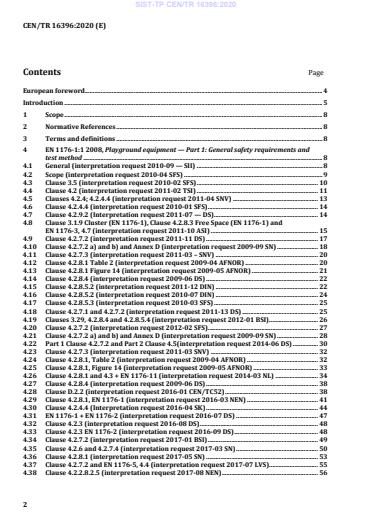 Namen dokumenta CEN/TR 16396:2020 je objaviti odgovore na zahteve za razlago vseh delov skupine standardov EN 1176, ki jih je pripravila komisija za interpretacijo in potrdil tehnični odbor CEN/TC 136/S C1 »Oprema otroških igrišč«.