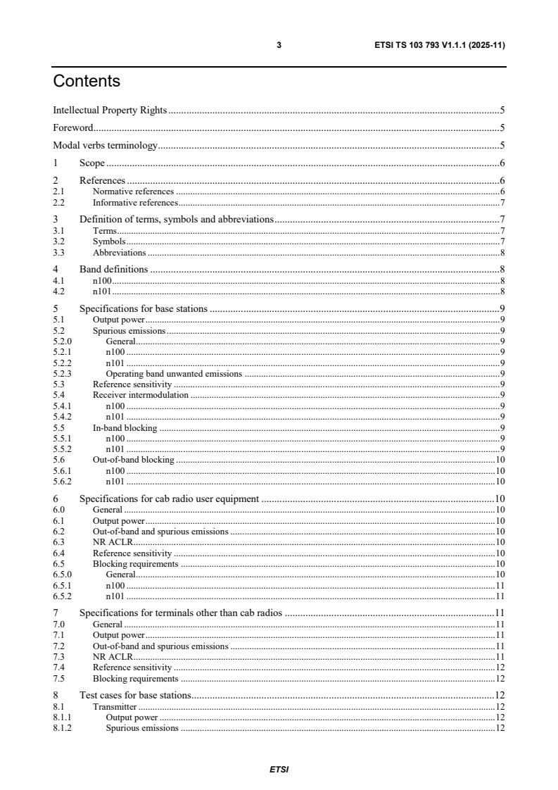 ETSI TS 103 793 V1.1.1 (2025-11) - Rail Telecommunications (RT); Future Railway Mobile Communication System (FRMCS); Radio Characteristics